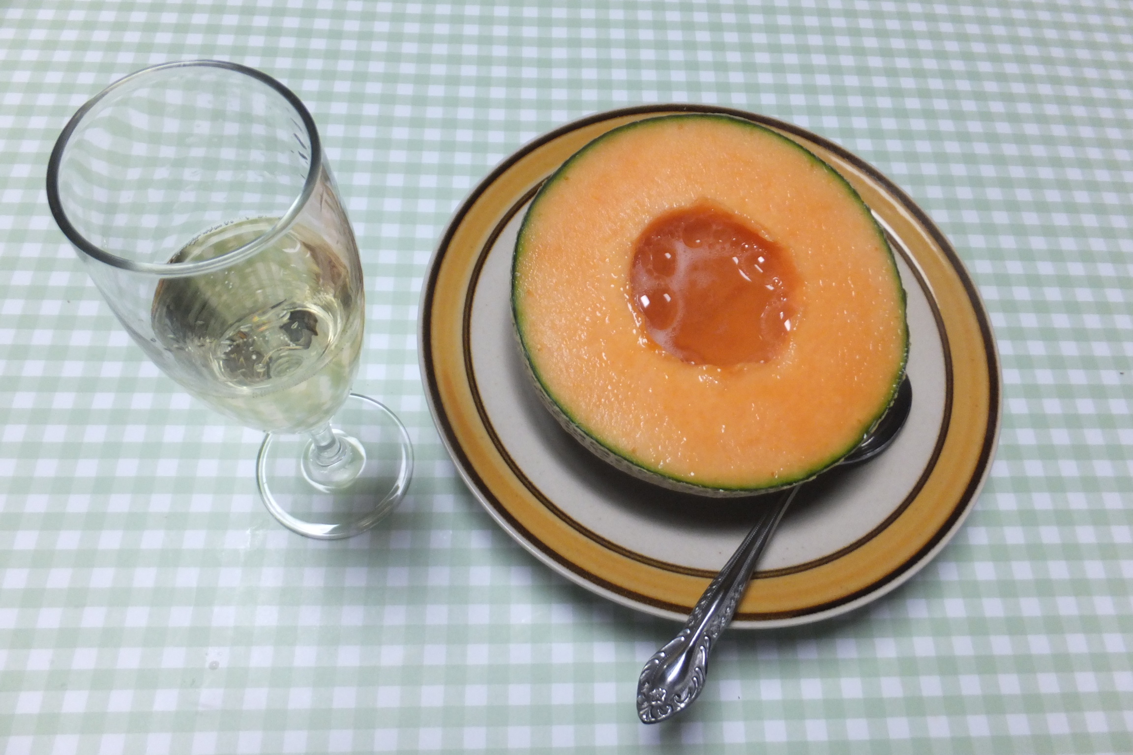 私はメロンを半分に切って、タネをとった窪みにシャンパーニュを注いで食べる。