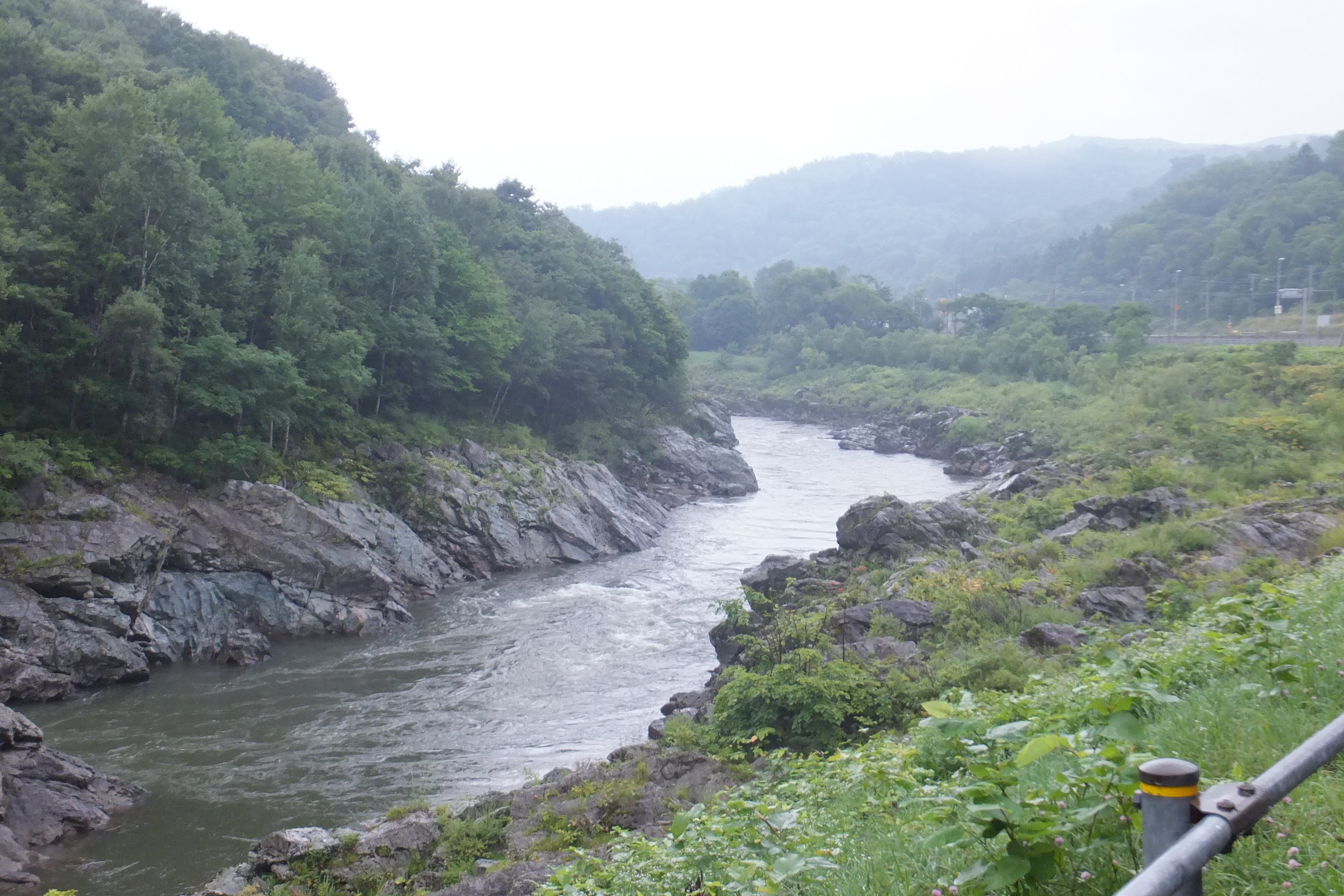 天下の大河・石狩川が、ここ神威古潭では川幅数十mに狭まるのだ。