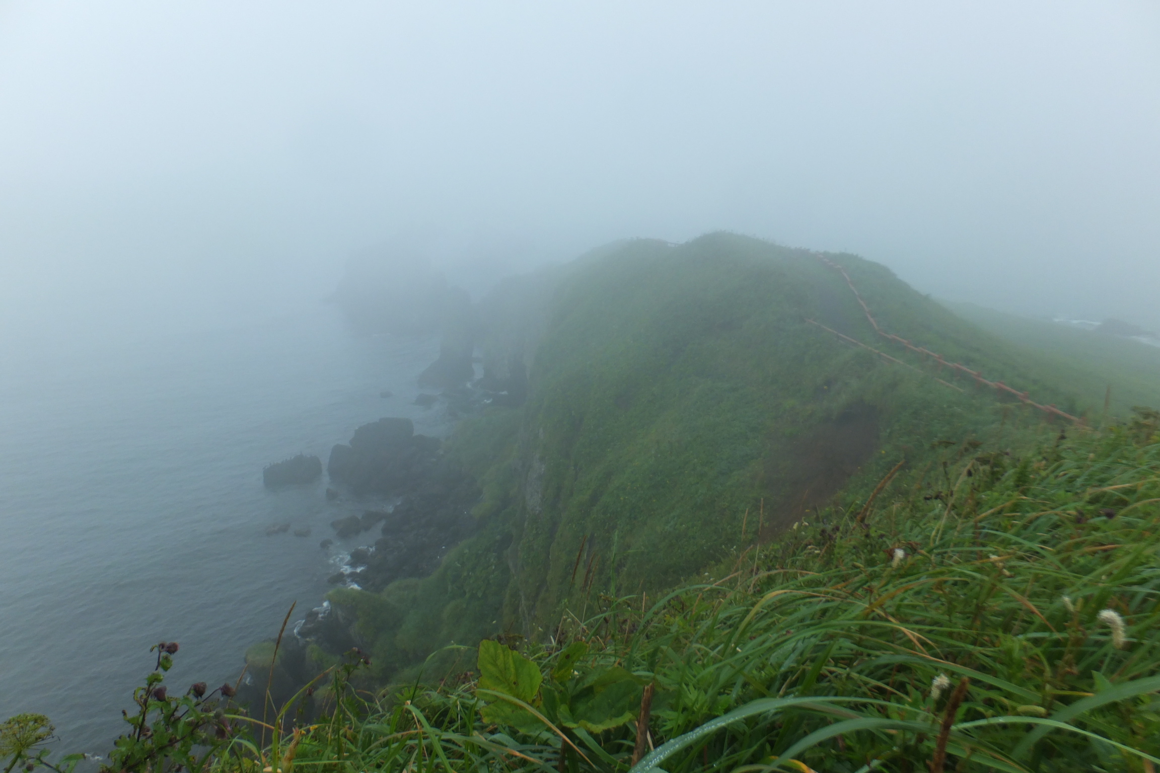 だったら、その名も霧多布岬は当然、霧雨。