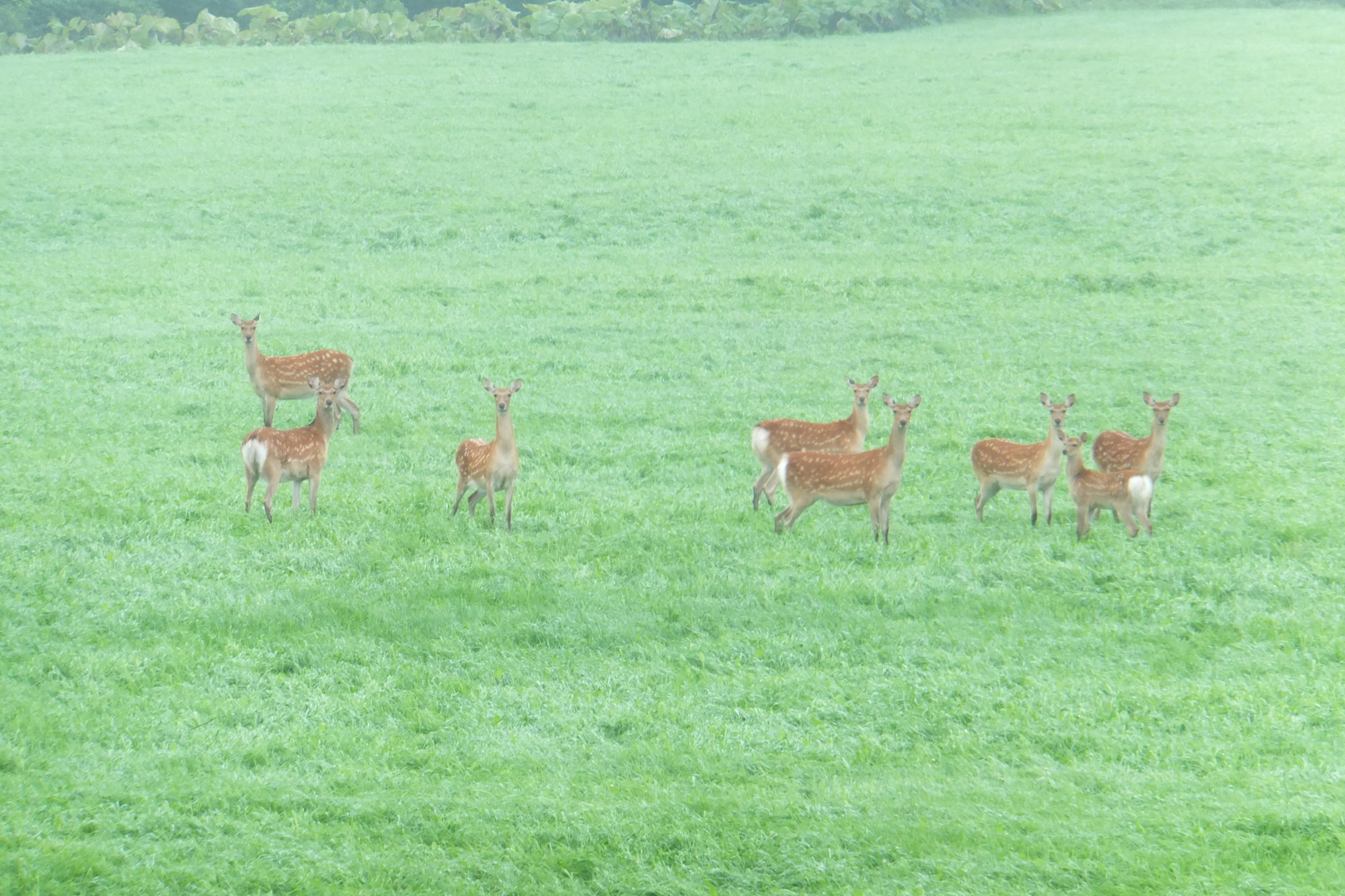 牛も馬もいないときの牧場には蝦夷鹿がいる。